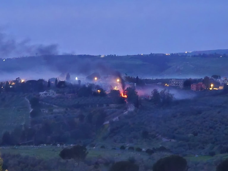 في مشهد مخيف، الجيش الإسرائيلي يقدم على حرق منازل في بلدة عدشيت القصير في قضاء مرجعيون.