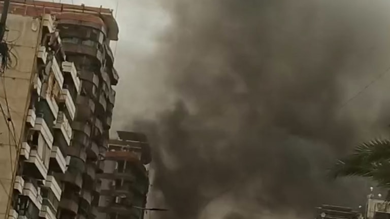 لقطات تُظهر الدخان الأسوء والغبار في محيط أوتوستراد السيد هادي نصرالله في الضاحية بعد الغارات على حي الأبيض.