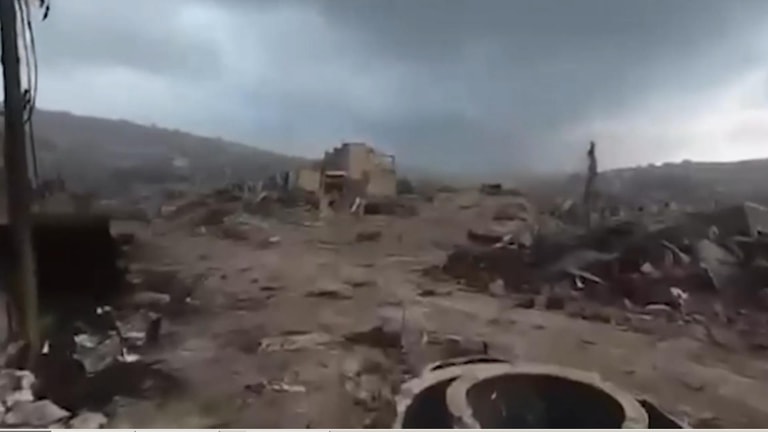 نشر الإعلام الإسرائيلي فيديو لما قال إنّه التُقط بدرون إسرائيليّة لإظهار الدمار في بلدة بنت جبيل الجنوبيّة.