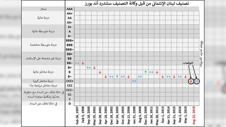 ينتظر لبنان تقرير وكالة التصنيف الإئتماني العالمية "ستاندارد آند بورز" المُتوقّع صدوره اليوم. وتّم تداول معلومات عن أن الوكالة أعطت لبنان فترة سماح لمدّة 6 أشهر إضافية بناءً على طلب من وزارة المال بهدف تطبيق الإصلاحات التي إتخذتها السلطة السياسية في إجتماع بعبدا المالي.