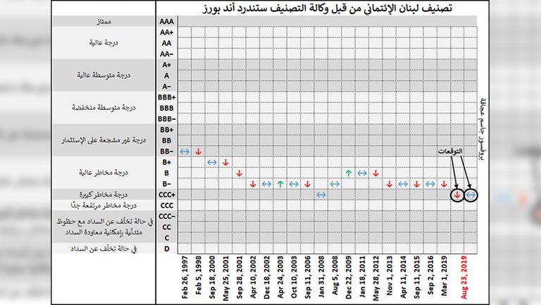 ويُضيف: "تداعيات تخفيض التصنيف تتمثّل بأربعة نقاط: إرتفاع كلفة الإقتراض على الدولة اللبنانية، إرتفاع كلفة الإقتراض على المصارف وبالتالي على القروض، هروب الإستثمارات الأجنبية المباشرة، وإنخفاض الإستهلاك بحكم المخاوف"، متابعاً: "إن هذا الأمر يعني أن على الحكومة أن تضع ضرائب في موازنة العام 2020 لتستطيع سدّ الإرتفاع في خدمة الدين العام كما التسريع في بدء المشاريع الإستثمارية لتحريك العجلة الإقتصادية".