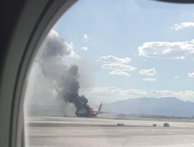 Airport officials said at least 13 people were taken to the city's Sunrise hospital, most of them with injuries sustained while sliding down inflatable chutes during the evacuation.
