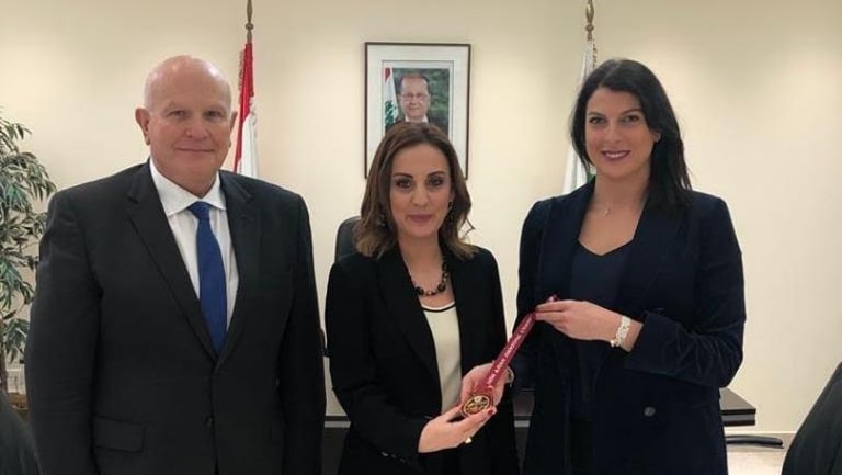 Minister of Youth and Sports Vartine Ohanian welcomed the President of the Lebanese Federation for Shooting and Hunting, Pierre Jalakh, and trapshooter Ray Bassil who won the Asian Championship title and qualified for the Summer Olympics, which will be held in the Japanese capital, Tokyo next summer.