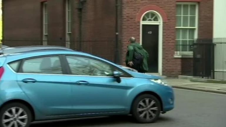 Dominic Cummings, dressed in a green rain coat and with a rucksack over his shoulder, was shown on television running from Downing Street.