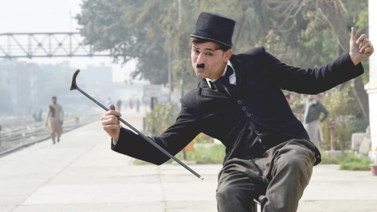 In the bustling northern Pakistani city of Peshawar a man in bowtie, bowler hat and carrying a cane flamboyantly weaves through busy traffic, narrowly avoiding rickshaws, motorcycles and buses in a scene reminiscent of a 1920s silent film.