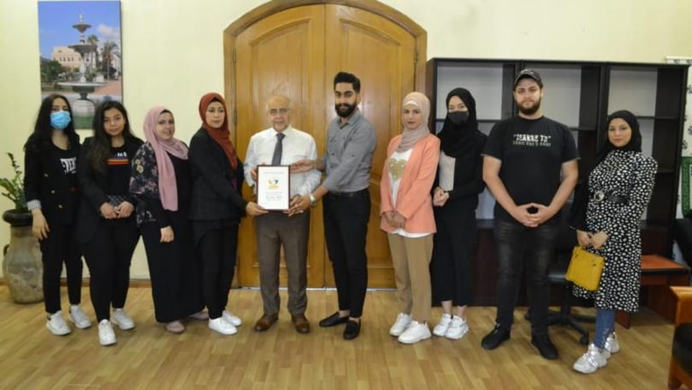 وضم الوفد العميدين المتقاعدين عبد مواس وفواز عرب، الدكتور لينا طيب الرافعي والصيدلاني الدكتور محمد شمسين.