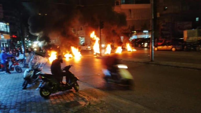 بالصور: عدد من المحتجين يحرقون الاطارات بين الشياح وعين الرمانة