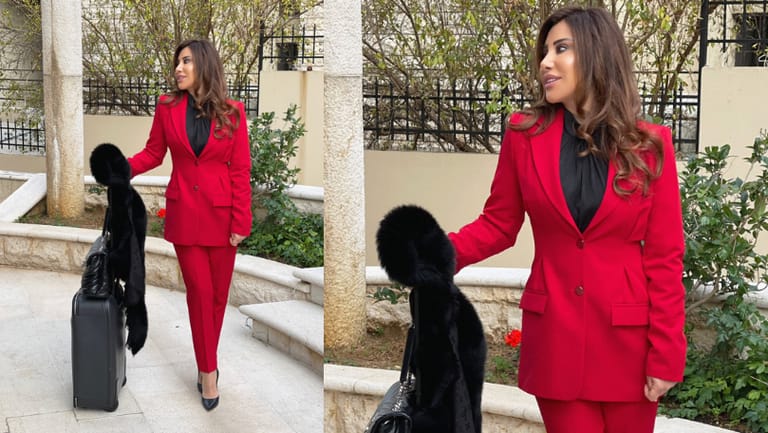 وشاركت كرم صورة من مدخل منزلها وهي تستعد للتوجه الى مطار بيروت، واختارت أن تودع العام الجاري باللون الأحمر، وغردت: ”طالعين دبي لإحياء حفلة رأس السنة“.
