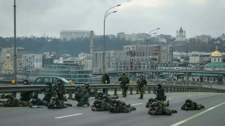 مع حلول مساء السبت، كان من الواضح أن عملية بوتين الخاطفة لإزاحة الحكومة الأوكرانية الموالية للغرب قد واجهت صعوبات غير متوقعة، حيث كانت خطة الكرملين الأصلية، وفقًا للاستخبارات الأوكرانية، هي تطويق المدينة بالقوات البرية خلال عملية ليلية لنقل 5000 من النخبة المظليين يقتحمون قصر ماريانسكي الرئاسي، ويحتجزون أو يقتلون الرئيس الأوكراني فولوديمير زيلينسكي، ويسيطرون على المباني الحكومية الرئيسية، بما في ذلك وزارتي الخارجية والدفاع من ثم القضاء على المقاومة واعتقال الشخصيات الرئيسية ثم تنصيب إدارة عميلة موالية لروسيا.