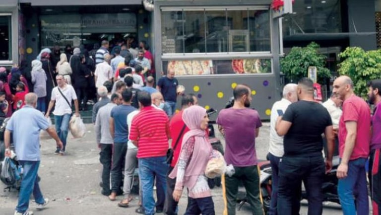ويصطف اللبنانيون منذ أكثر من شهر في طوابير أمام الأفران للحصول على ربطة خبز، في ظل عدم توفر مادة الطحين بكميات كبيرة، كما في السابق، لأسباب متعددة أبرزها استمرار الحكومة بدعم الطحين لصناعة الخبز، في ظل تراجع الاحتياطي بالدولار لدى مصرف لبنان، ما يؤدي إلى تقنين بفتح اعتمادات مالية للبواخر القادمة من الخارج، إضافة لنشاط عمليات التهريب والسوق السوداء. وحسب حديث سابق لوزير الاقتصاد، فإن 400 ألف ربطة خبز تذهب يومياً للنازحين السوريين، وأن 75 في المئة من الذين يصطفون في الطوابير أمام الأفران هم من النازحين. وقد سُجل نتيجة هذا الواقع أكثر من إشكال بين اللبنانيين أنفسهم للحصول على الخبز، كما بين السوريين واللبنانيين.