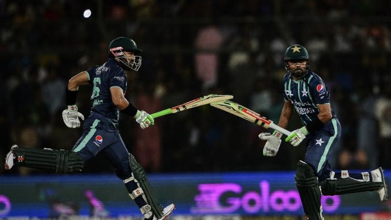 Babar delighted the raucous home crowd by reaching his second T20 international century in the 18th over from 62 balls and Rizwan, who was dropped on 23 runs by Alex Hales, finished with a 51-ball unbeaten 88.