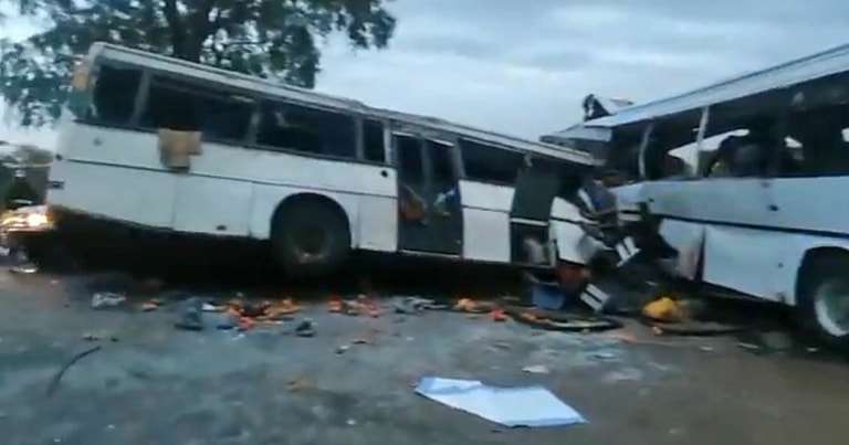 At least 38 people have died and scores were injured when two buses collided near the town of Kaffrine in central Senegal on Sunday, according to the president and the fire services.