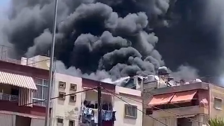 A video circulating on social media shows a large fire of solar panels on the roof of a building in Sidon.