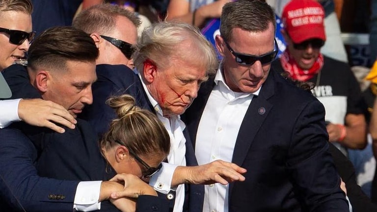 The image of Trump raising a defiant fist as Secret Service agents bundled him away made front pages around the world and spread virally on social media.