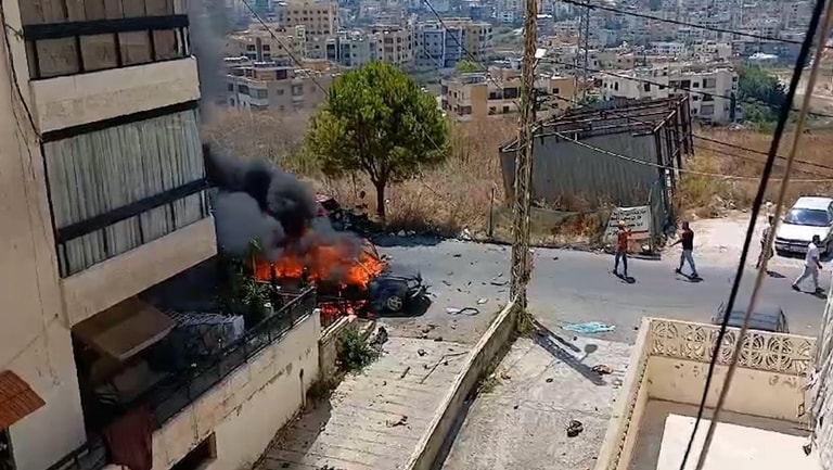 Israeli enemy targeted a car on Nabih Berri Avenue in Haret Saida, and it was reported that the driver who's a leader in Hamas, survived after leaving his mobile phone in the car and getting out.