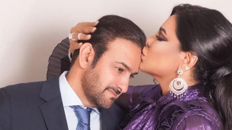 برفقة زوجها مبارك الهاجري، والذي سيطر عليه أجواء من السعادة والبهجة بين الثنائي.