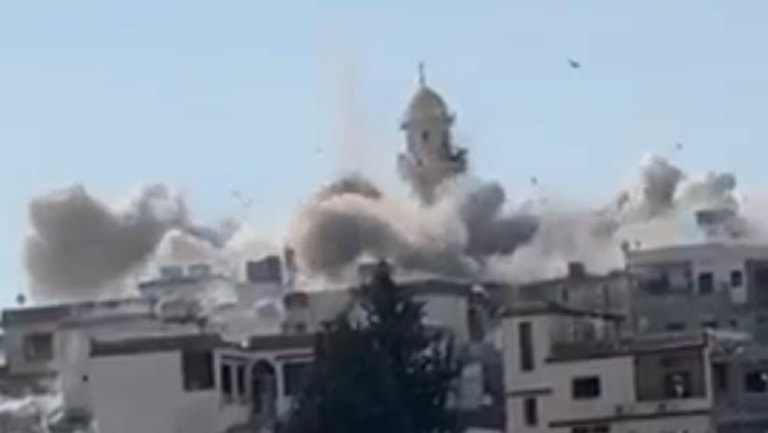 An Israeli airstrike destroyed the mosque in the town of Yaroun in Bint Jbeil.