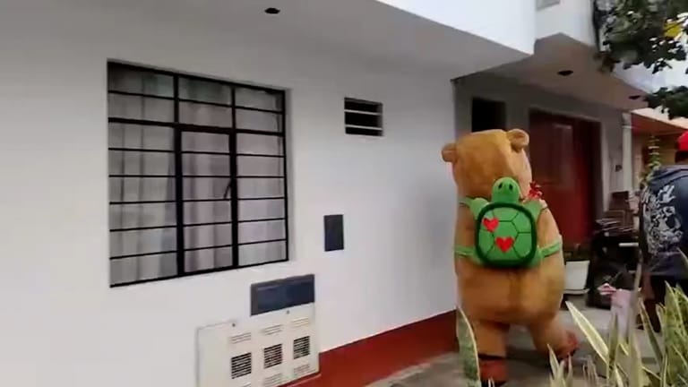 The police in Peru presented the strangest gift to one of the most dangerous drug traffickers on Valentine's Day, as an officer disguised himself as a "teddy bear" in a decoy operation before knocking on the door of one of the wanted drug dealers and arresting him.