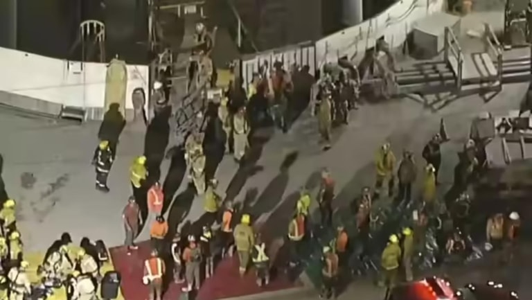 Around 10 p.m., 27 of the workers were being medically evaluated by LAFD paramedics at the scene for minor injuries.