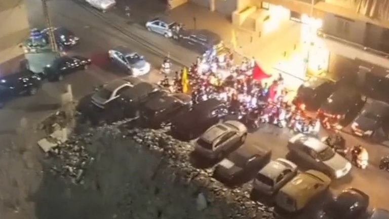 مسيرات لمناصري "الحزب" وحركة أمل في الضاحية الجنوبية لبيروت، في الفيديو المرفق.