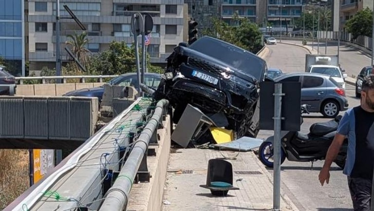 An accident occurred on the Naccache - Antelias Bridge after the driver of an SUV lost control, causing him to heavily crash into the concrete divider in the middle of the bridge.