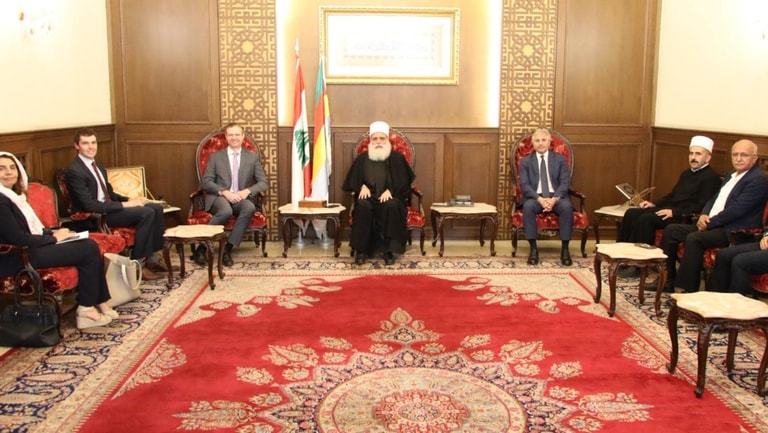 The delegation included Political and Economic Counselor Jaime Omilla, Foreign Assistance Coordinator Ethan Lynch, and Religious Affairs Officer Veronica Shio. Members of the sectarian council and advisors to the Sheikh Akl also attended.