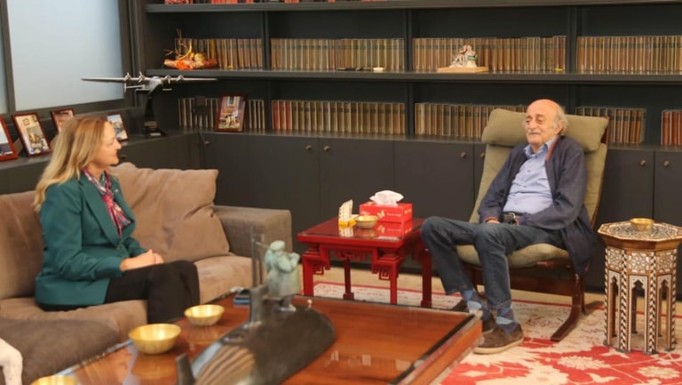 Former Progressive Socialist Party leader Walid Jumblatt, received yesterday evening in Clemenceau, US Ambassador to Lebanon Lisa Johnson who paid him a farewell visit upon the end of her diplomatic mission in the country.