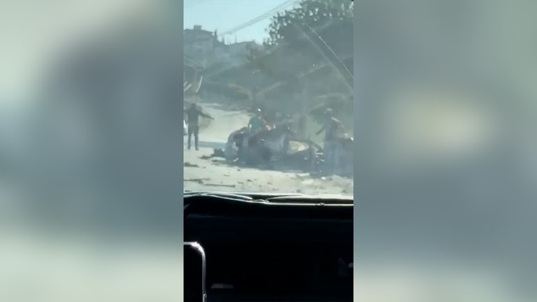 Israeli airstrike targeted a vehicle in the town of Khirbet Selm, as shown in the attached video.