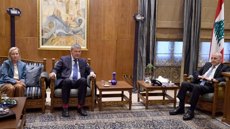Parliament Speaker Nabih Berri received at the Second Presidency headquarters in Ain al-Tineh, UNRWA Commissioner-General Philippe Lazzarini, in the presence of the Director of UNRWA Affairs in Lebanon Dorothee Klaus.