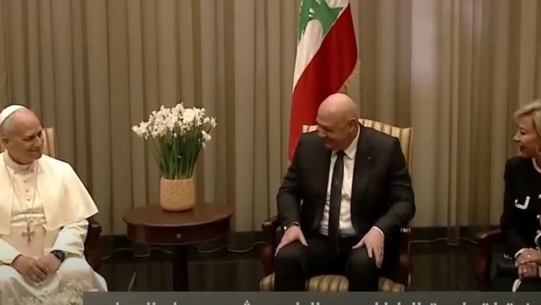 Photo: Pope Leo XIV receives an official welcome in the airport’s VIP lounge