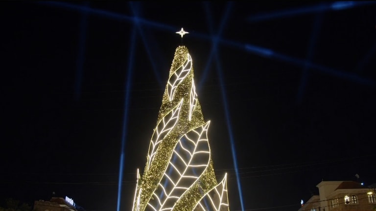 Watch the moment the Christmas tree was lit in the city of Jbeil in the attached video.
