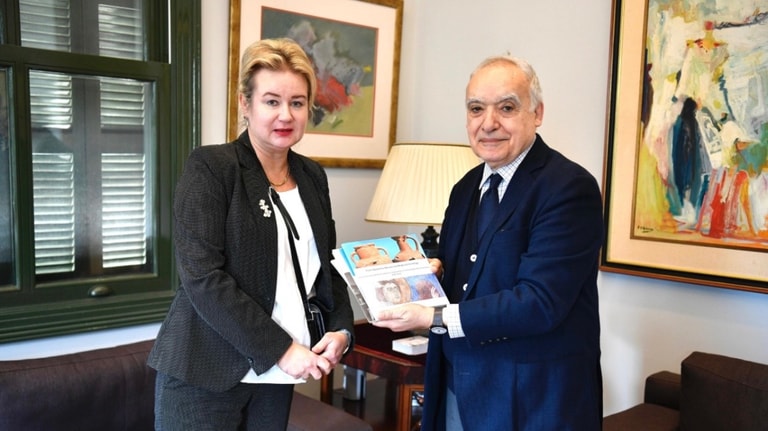 Minister of Culture Ghassan Salameh received the Polish Ambassador to Lebanon, Aleksandra Bukowska-McCabe, at his office in the National Library in Sanayeh.