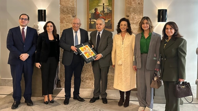 Minister of Culture Ghassan Salameh received a delegation from the Lebanese Children's Cancer Center at his offices in the National Library in Sanayeh.