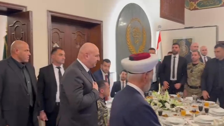 In the attached video, you can see the moment when President Joseph Aoun arrived to participate in the central iftar hosted by the Grand Mufti Abdul Latif Derian at Dar al-Fatwa.