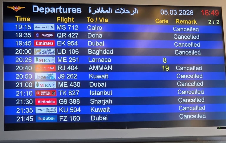 Photo: All flights have been cancelled at Beirut–Rafic Hariri International Airport except for the flight bound for Larnaca International Airport