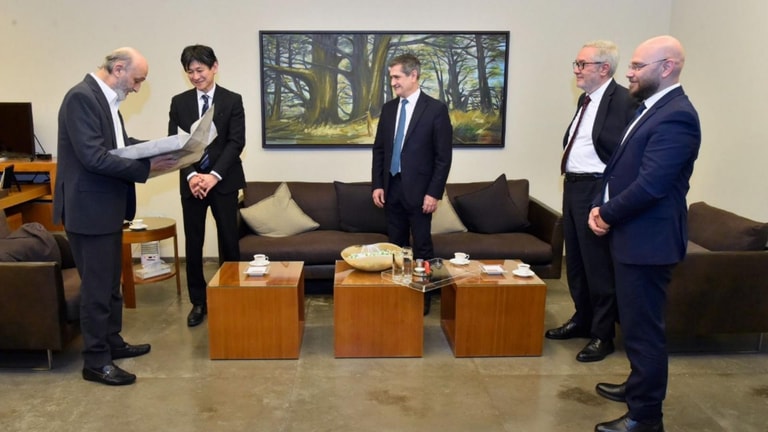 Lebanese Forces party leader Samir Geagea received the newly appointed Japanese Ambassador to Lebanon, Kenji Yokota, in Maarab, who came on a courtesy visit.