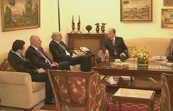 أما وليد بيك الذي غالباً ما يلتزم الصمت أمام الكاميرات، فيسأل عون عن أحد الأصدقاء المشتركين...