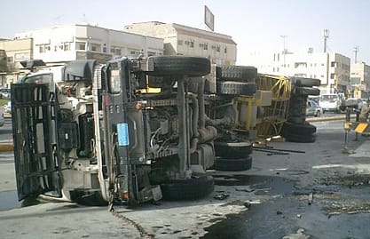 غرفة التحكم المروري: 4 جرحى في تدهور الشاحنة على طريق عاريا وتحذير من خطر الانزلاق بسبب تسرب مادة المازوت