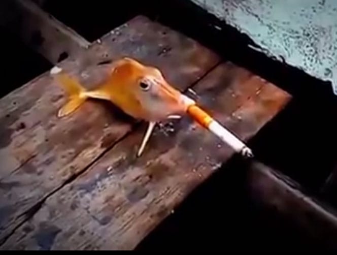 تداول مستخدمو مواقع التواصل الإجتماعي فيديو لسمكة يجبرها مجموعة صيادين على وضع سيجارة مشتعلة في فمها على سبيل المزاح.