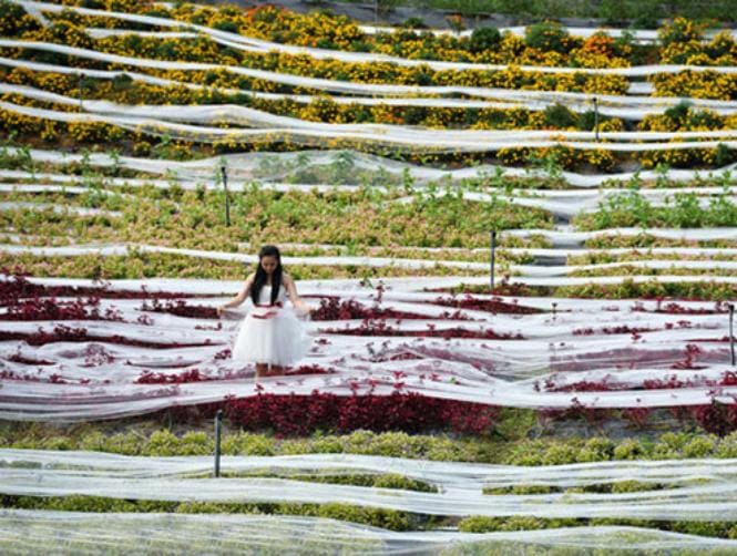 ظهرت عارضة ازياء بفستان زفاف يبلغ طوله 4100 متر في مدينة تشنغدو عاصمة مقاطعة سيتشوان جنوب شرق الصين.