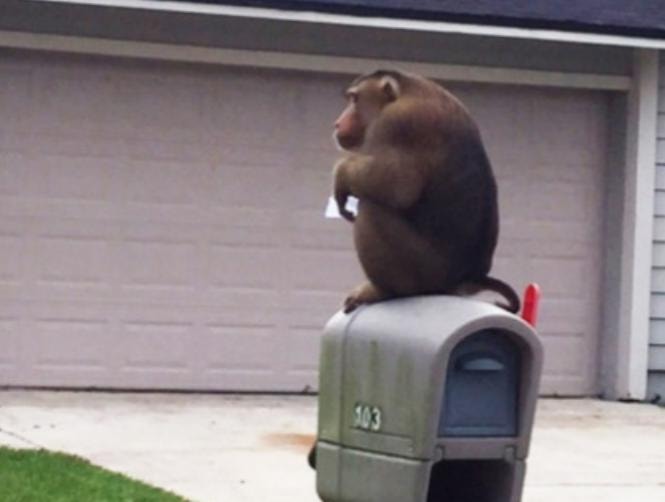 قام قرد مكاك آسيوي هرب من منزل صاحبه في إحدى ضواحي أورلاندو بأكل رسائل الجيران واللعب فوق سيارة الشرطة والقفز ذهابا وإيابا على لافتات الشوارع.