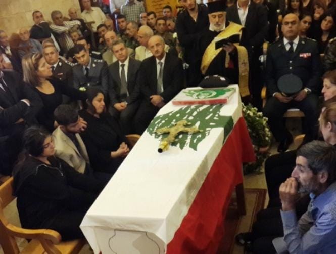 وأمام باب كنيسة القديس جوارجيوس للروم الارثوذكس، قدمت ثلة من رفاق السلاح التحية العسكرية لتقام الصلاة لراحة نفسه في حضور العقيد توفيق يزبك ممثلا وزير الدفاع سمير مقبل وقائد الجيش العماد جان قهوجي، ومثل الرئيس سعد الحريري النائب رياض رحال، في حضور النائب نضال طعمة، اسعد درغام ممثلا النائب العماد ميشال عون، عصام عبد القادر ممثلا امين عام تيار المستقبل احمد الحريري الى ممثلين عن القيادات العسكرية والامنية وقيادات حزبية وفعاليات المنطقة.