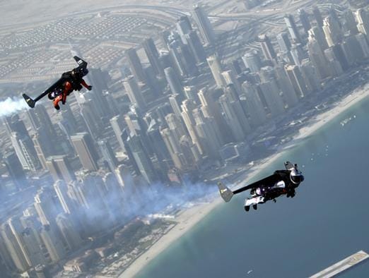 لا حدود للمغامرة في حياة السويسري إيف روسي، والذي لم يتوان عن تجربة أشياء لا تخطر على البال في مجال احترافه، ألا وهي الحركات الخطرة على ارتفاعات شاهقة. لذلك بات روسي يُعرف باسم "جيتمان"، وذلك لاستخدامه أجنحة صناعية مصنوعة من مادة الكيفلار ومثبت تحتها محركان نفاثان يساعدانه على التحليق.