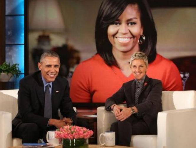 فاجأت مقدّمة البرامج الأميركيّة إيلين ديجينيريس الرئيس الأميركي باراك أوباما خلال إستضافته في برنامجها Ellen Show يوم الخميس الماضي، بفيديو للسيّدة الأولى تلقي فيه قصيدة له، باعتبار أنّ عيد الحبّ هذا العام هو الأخير لهما في البيت الأبيض، وجاء فيها: "الورود حمراء، وورود البنفسج لونها بنفسجي، أنت الرئيس، وأنا حبيبتك"، ليردّ بعدها أوباما بقصيدةٍ أخرى بدوره، فيها السيّدة الأولى بعشاء مميّز تُحبّه في هذه المناسبة.