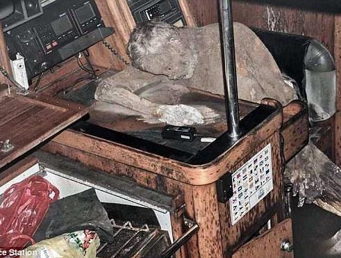 Other pictures from inside the yacht show the state of chaos in which it was found - clothing, footwear, books, paper - among the detritus. And a touch of humour too in the sign screwed into a bulkhead: 'This is a swell ship for the skipper....but a hell ship for the crew.'