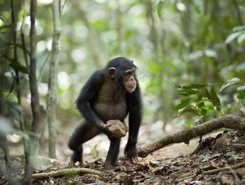 Chimpanzees and other apes have long been known to use stones and other materials as tools, including their use as nutcrackers to get into food that is cased in a hard shell. But the new behaviour doesn't seem to have the same functional purpose.