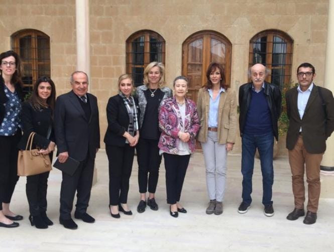 التقى رئيس "اللقاء الديموقراطي" النائب وليد جنبلاط في قصر المختارة، بحضور نجله تيمور جنبلاط وعقيلته السيدة نورا جنبلاط زوجة الأمين العام للامم المتحدة، سيغان كيمون، وممثلة الامين العام في لبنان سغريد كاغ، وزوجة السفير نواف سلام والتي تفقدت مكتبة المختارة وقصر بيت الدين حيث استقبلتها السيدة نورا.