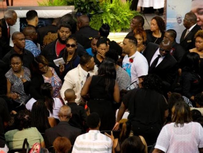 The visitation was held at the center to accommodate the large crowds expected to pay their respects to the father of five known as "Big Alton." He was shot by police at a close quarters on July 5 as he sold CDs outside a convenience store in an incident that was recorded on a cellphone.
