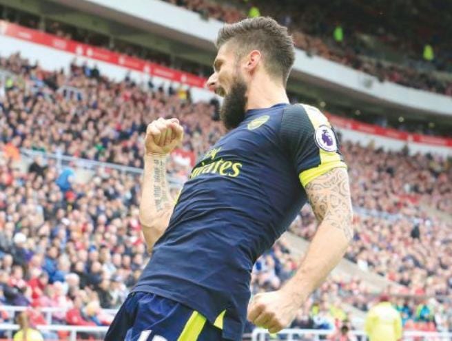 دخل الفرنسي أوليفييه جيرو بديلاً في الشوط الثاني فسجل هدفين وأسهم في منح أرسنال الفوز على مضيفه سندرلاند 4-1، في المرحلة العاشرة من الدوري الإنكليزي لكرة القدم، ليرفع أرسنال رصيده إلى 23 نقطة من 10 مباريات.