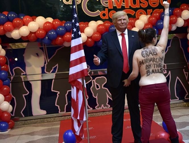 تعرّض تمثال الرئيس الأميركي الجديد دونالد ترامب الذي عُرض في مدريد، لهجوم نفذته نساء عاريات.